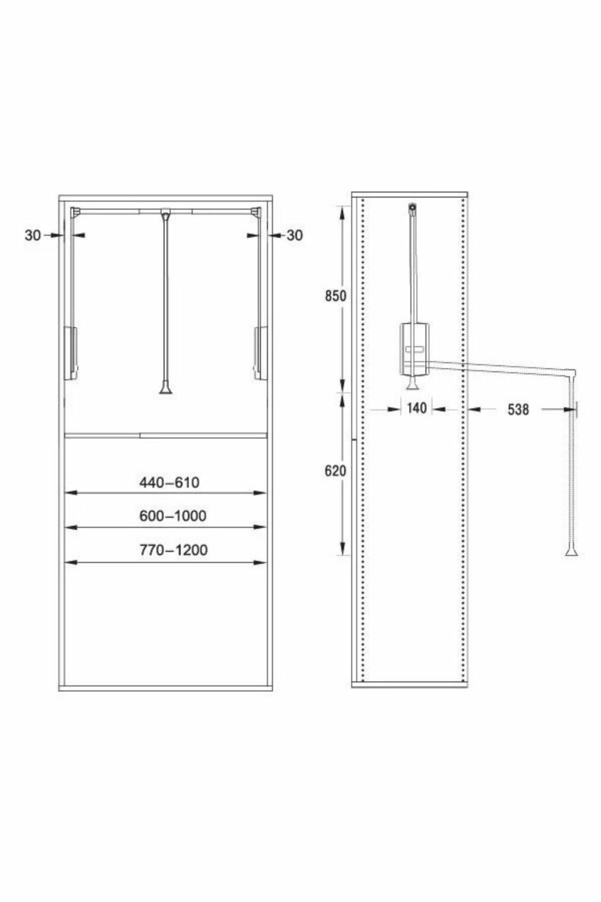 Montaj öncesinde dolap içi genişlik ve yükseklik ölçüsü alınması önerilir.