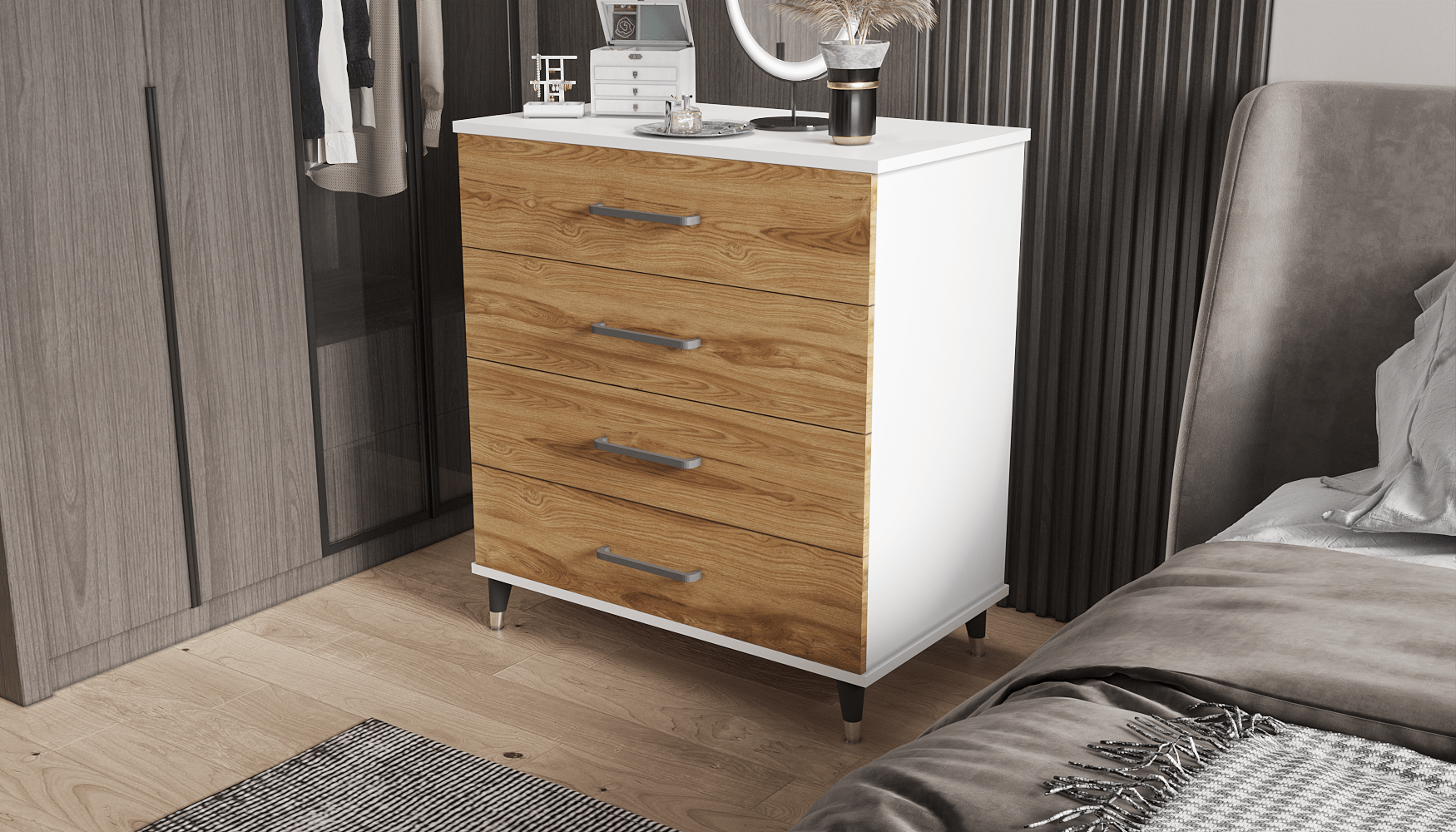 ✔ Modern Uyum: Farklı gardırop ve yatak odası takımlarıyla kolayca kombinlenebilir.