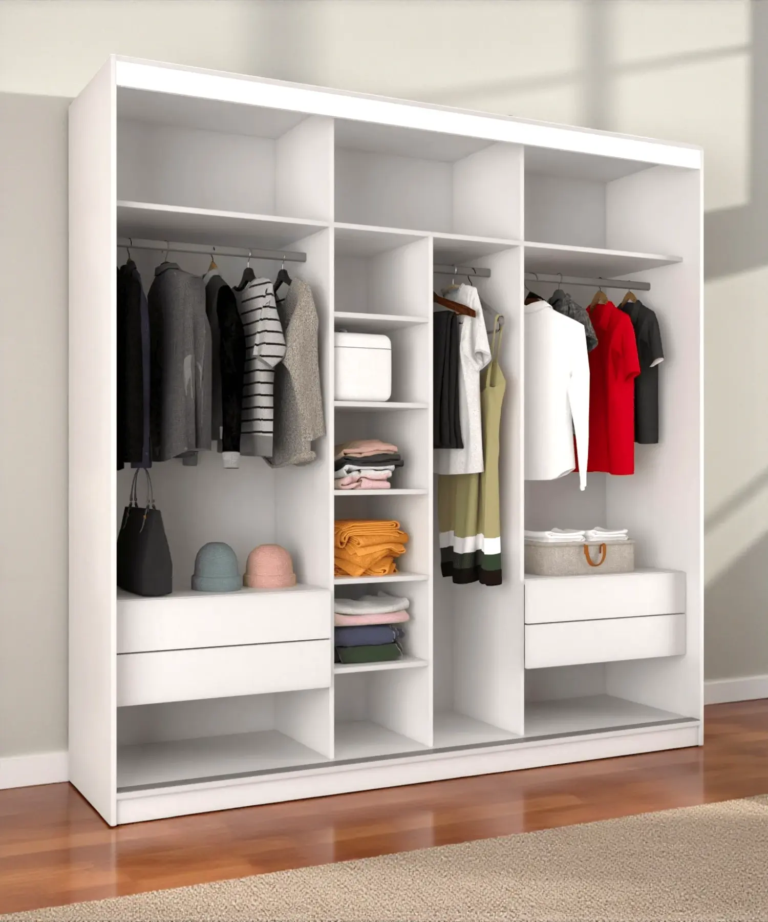 Sürgülü Gardırop Kısmi Kapaklı 240 × 245 cm | Parlak Beyaz
