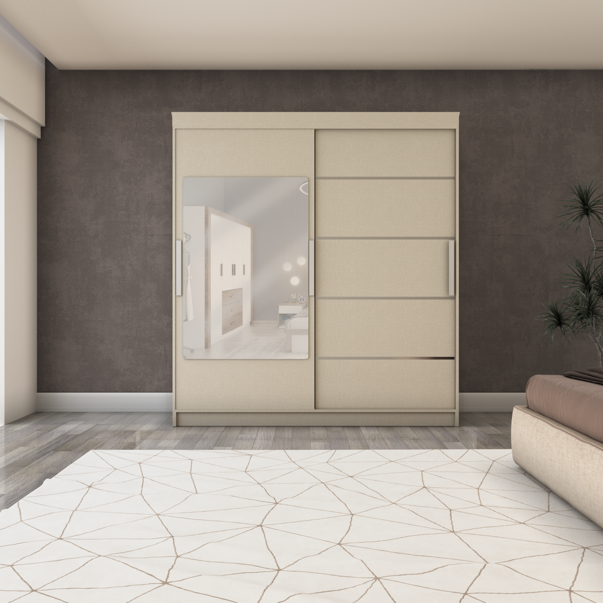 Sürgülü Gardırop iki kapaklı aynalı 180/210cm (KOTON VİZON)